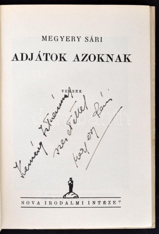 Megyeri Sári: Adjátok azoknak. Versek. Szőnyi István rajzaival. Budapest, 1935, Nova Kiadás. Szerző által Kemény Istvánnak dedikált példány! Illusztrált kiadói papír kötésben. Jó állapotban.
