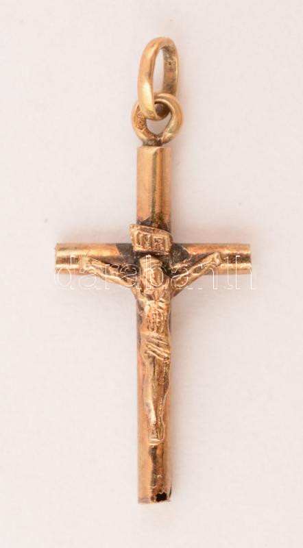 Arany (Au) 14K feszület, jelzett, 2×1 cm, nettó 0,4 g https://www.darabanth.com/de/278-Fernauktion/278.0/Juwelen/Juwelen~35/Arany-Au-14K-feszulet-jelzett--2C3971-cm-netto-0-4-g~II1429019