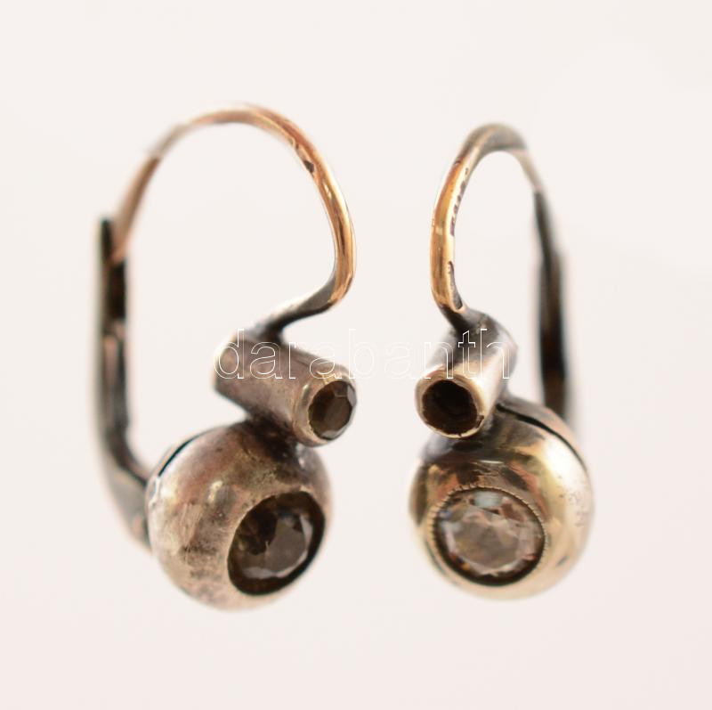 Beschreibung: Arany (Au) 14K fülbevaló pár, ezüst (Ag) foglalatban, kő berakással, jelzett, h: 2 cm, bruttó 2,1 g