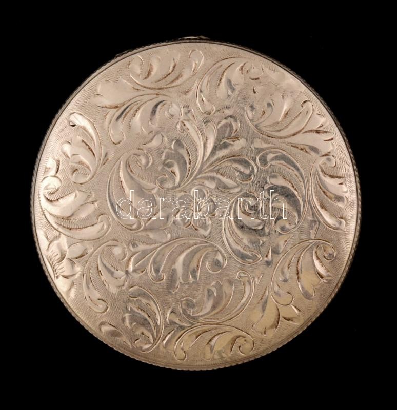 Beschreibung: Ezüst(Ag) púdertartó ornamentikus mintával, jelzett, tükör nélkül(beragasztott papírral), br: 34,3 g