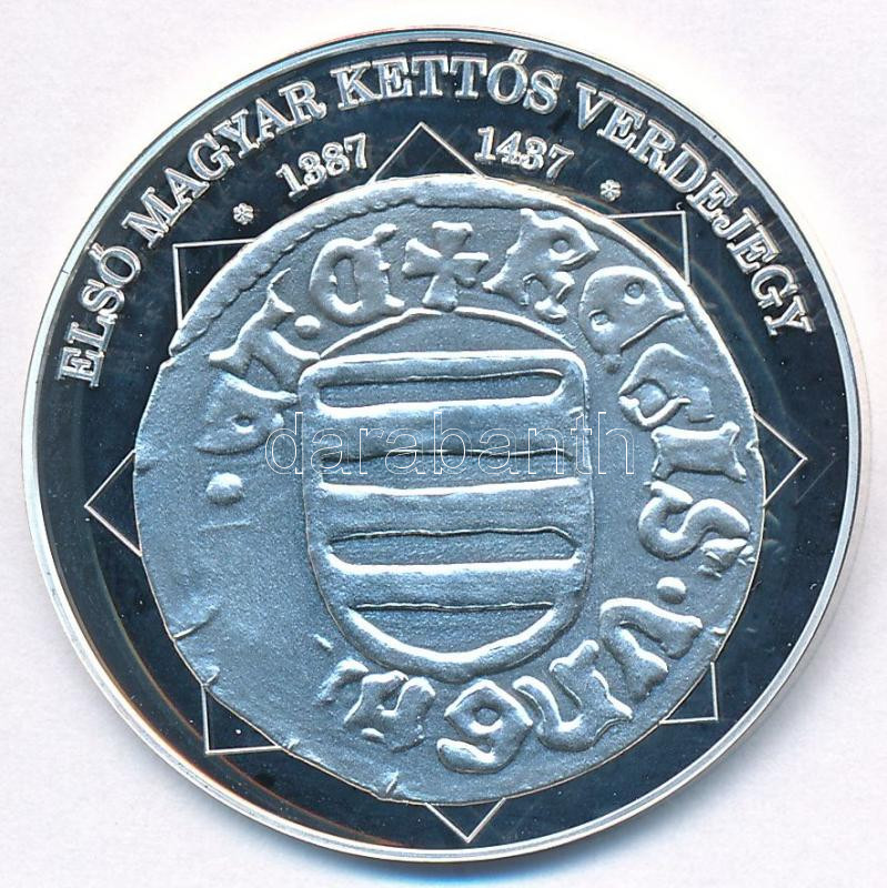 Beschreibung: DN "A magyar nemzet pénzérméi - Első magyar kettős verdejegy 1387-1437" Ag emlékérem (10,37g/0,999/35mm) T:PP