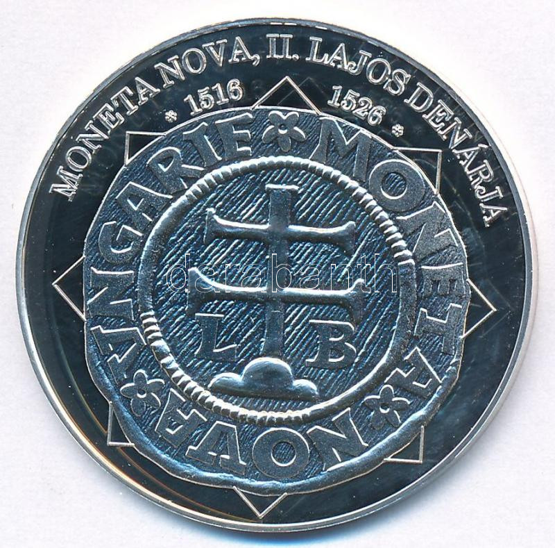 Beschreibung: DN "A magyar nemzet pénzérméi - Moneta Nova, II. Lajos dénárja 1516-1526" Ag emlékérem (10,39g/0,999/35mm) T:PP