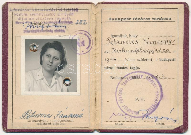 1950 Fővárosi közlekedési vállalat díjtalan utazásra jogosító igazolvá... https://www.darabanth.com/de/279-Fernauktion/279.0/Andere-Sammelgebiete/Dokument~16/1950-Fovarosi-kozlekedesi-vallalat-dijtalan-utazasra-jogosito-igazolvany-10x7cm~II1434304