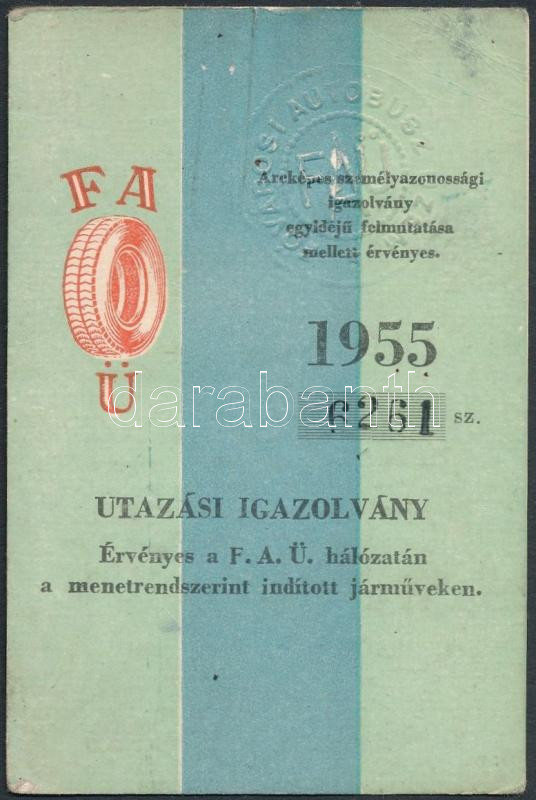1955 Fővárosi Autóbuszüzem Utazási Igazolvány (FA Ü), 9x6 cm. https://www.darabanth.com/de/279-Fernauktion/279.0/Andere-Sammelgebiete/Dokument~16/1955-Fovarosi-Autobuszuzem-Utazasi-Igazolvany-FA-U-9x6-cm~II1436948