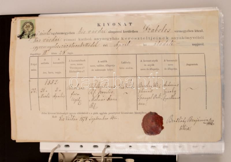 Vegyes okmány tétel: anyakönyvi kivonatok, levelek, stb., köztük okmán... https://www.darabanth.com/de/279-Fernauktion/279.0/Andere-Sammelgebiete/Dokument~16/Vegyes-okmany-tetel-anyakonyvi-kivonatok-levelek-stb-koztuk-okmanybelyegesek-is-osszes~II1439569