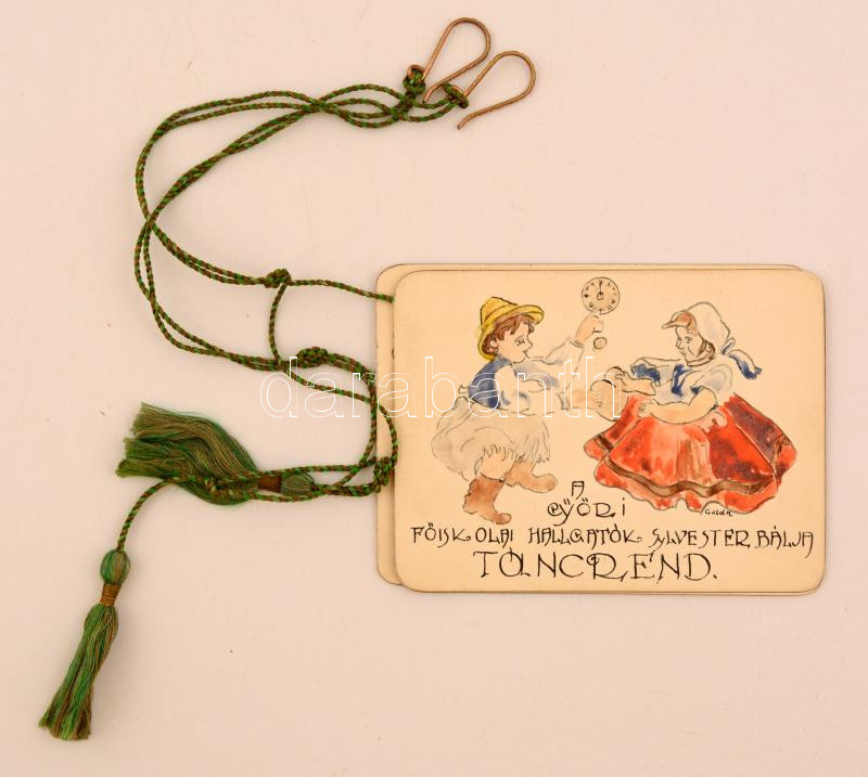 1919-1920 A győri főiskolai hallgatók szilveszteri báljának 2 db dísze... https://www.darabanth.com/de/279-Fernauktion/279.0/Andere-Sammelgebiete/Drucksachen~27/1919-1920-A-gyori-foiskolai-hallgatok-szilveszteri-baljanak-2-db-diszes-tancrendje~II1436209