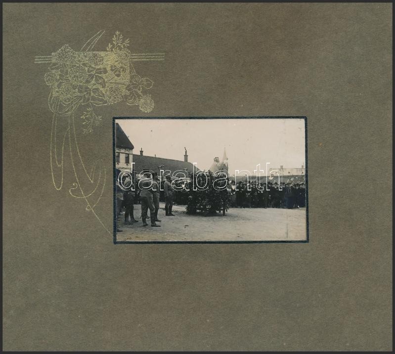 Beschreibung: 1915 Királyunk 85. születésnapjának megünneplése, Veszprém. 15 fotó díszes, alkalmi vászonkötéses albumban 6×5 - 8×5 cm