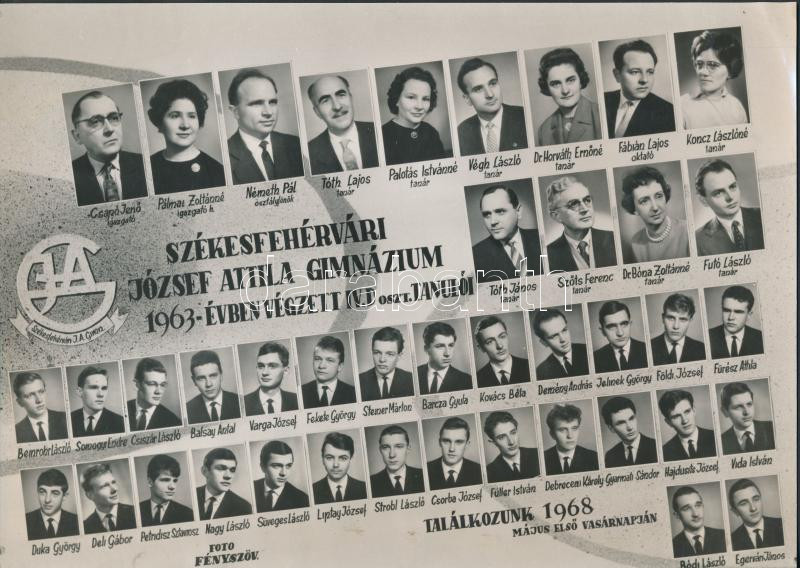 1963 Székesfehérvár, a József Attila Gimnáziumban végzett hallgatók és... https://www.darabanth.com/de/279-Fernauktion/279.0/Andere-Sammelgebiete/Foto~19/1963-Szekesfehervar-a-Jozsef-Attila-Gimnaziumban-vegzett-hallgatok-es-tanaraik-tablokepe~II1433328