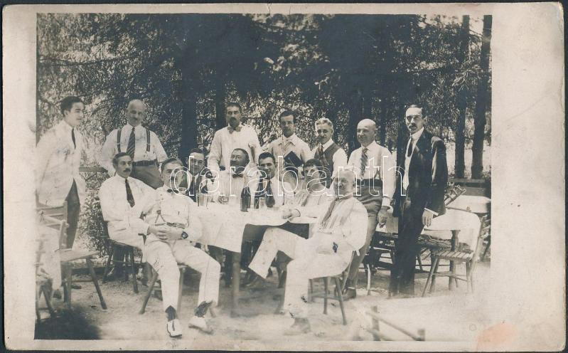 Borozó társaság Zugligetben, fotólap, hátulján feliratozva, 8,5×14 cm https://www.darabanth.com/de/279-Fernauktion/279.0/Andere-Sammelgebiete/Foto~19/Borozo-tarsasag-Zugligetben-fotolap-hatuljan-feliratozva-8-5C39714-cm~II1435563