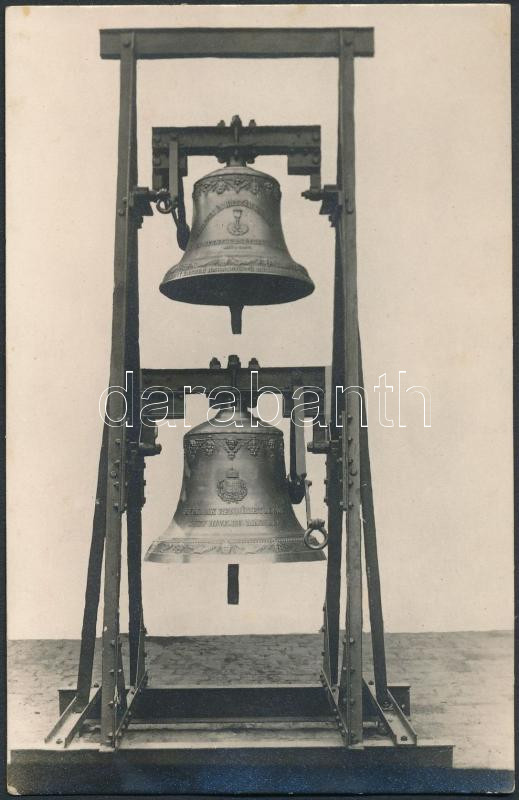 Beschreibung: Harangok Szlezák László harangöntő műhelyéből, fotólap Gerenday Arthur újpesti műterméből, hátulján feliratozva, pecséttel jelzett, 14×9 cm