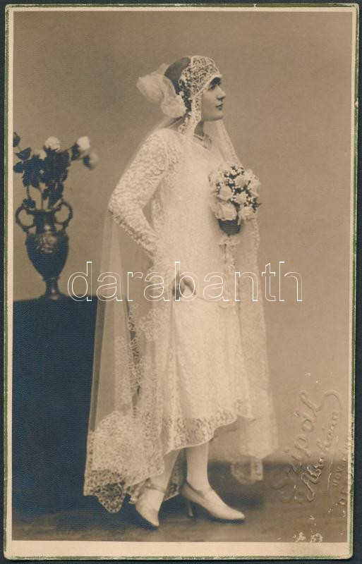 cca 1920-30 Esküvői portréfotó, fotólap, Szipál Ábrahám műterméből, 13... https://www.darabanth.com/de/279-Fernauktion/279.0/Andere-Sammelgebiete/Foto~19/cca-1920-30-Eskuvoi-portrefoto-fotolap-Szipal-Abraham-mutermebol-135x85-cm~II1437216