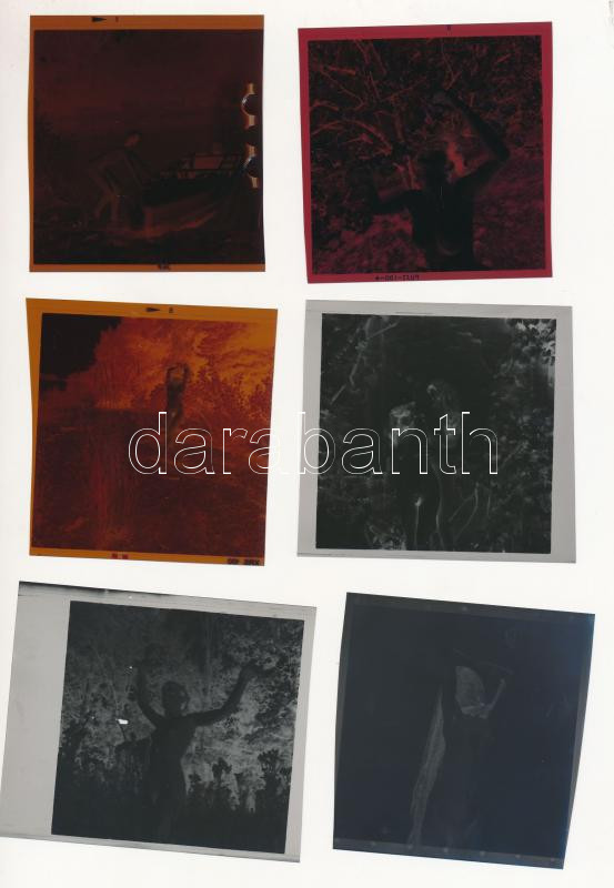 Beschreibung: cca 1979 Kint a szabadban, 13 db finoman erotikus aktfotó vintage negatívja, 6x6 cm / 13 erotic photo negatives, 6x6 cm