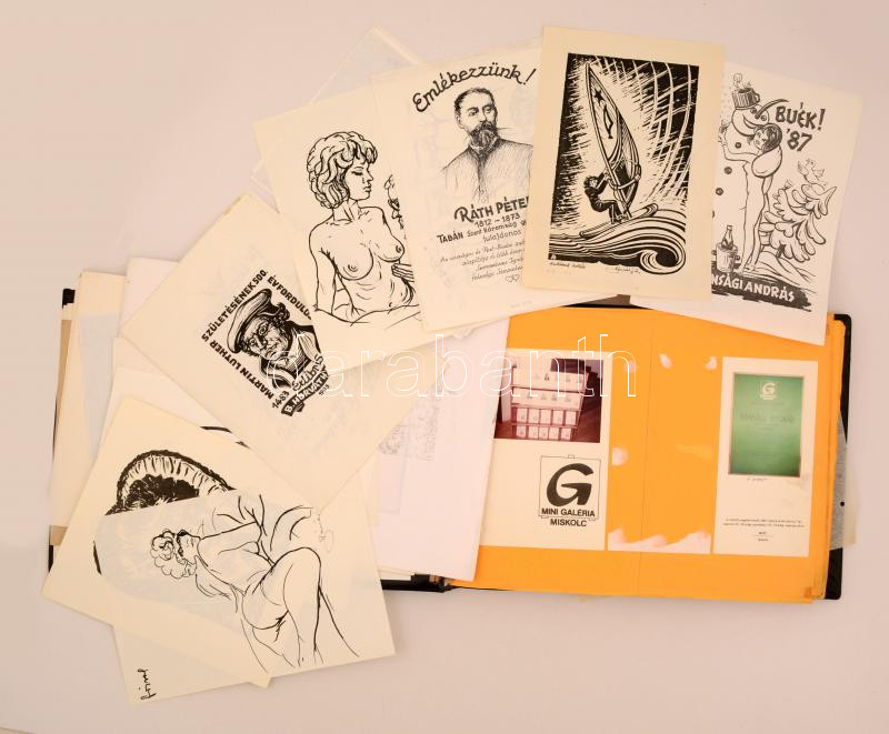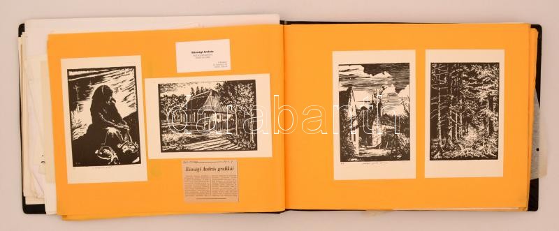 Bánsági András (1934-1993) grafikus művész grafikai hagyatéka. Igényesen összeállított album a művész kiadott grafikáival. Sok aláírt, sok különböző feljegyzéssel. Hozzá kiállítási meghívók, programfüzetek, Az egész egy nagy haránt alakú albumba betéve, részben beragasztva. Nagyon sok darab