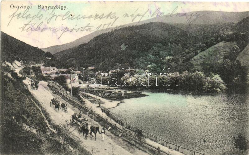 Beschreibung: Oravica, Oravita; Bányavölgy, faszállító szerekek / Mine valley, timber transport