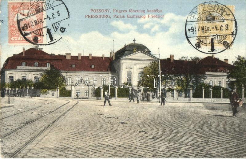 Pozsony, Pressburg, Bratislava; Frigyes főherceg kastélya, villamos sí... https://www.darabanth.com/de/279-Fernauktion/279.0/Ansichtskarten/Slowakei~300025/Pozsony-Pressburg-Bratislava-Frigyes-foherceg-kastelya-villamos-sinek-castle-tramway-TCV-~II1434165