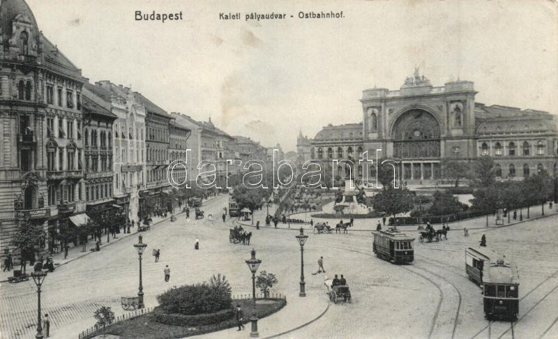 Beschreibung: Budapest VII. Keleti pályaudvar, villamosok, fogorvos