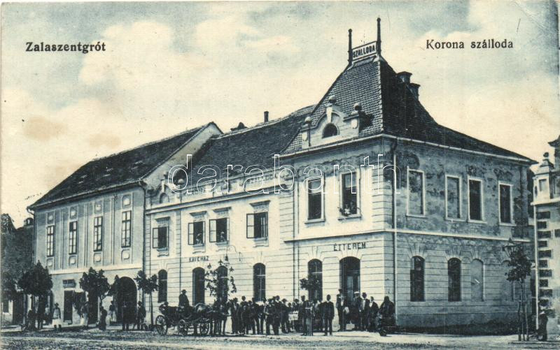 Beschreibung: Zalaszentgrót, Korona szálloda, kávéház, étterem, kiadja Nagy Sándor (EK)