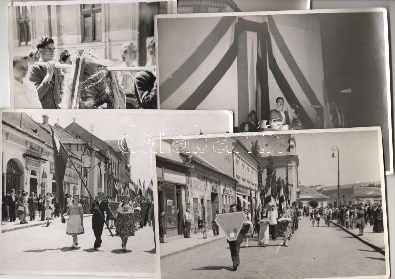 Beschreibung: 1948 7db fotó: Független Ifjúsági felvonulása, gyűlése Baja (17x12)
