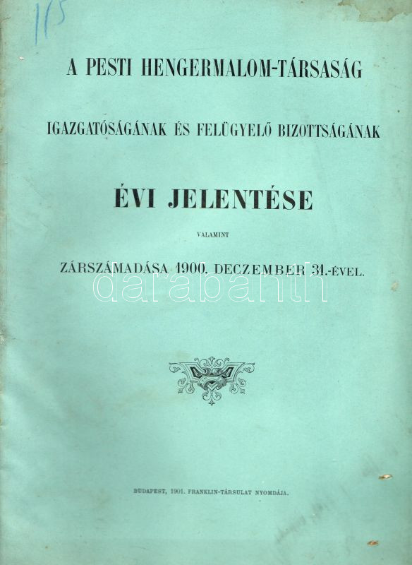 1901 A pesti hengermalom-társaság évi jelentése https://www.darabanth.com/de/28-Fernauktion/28.0/Andere-Sammelgebiete/~87/1901-A-pesti-hengermalom-tarsasag-evi-jelentese~II51273
