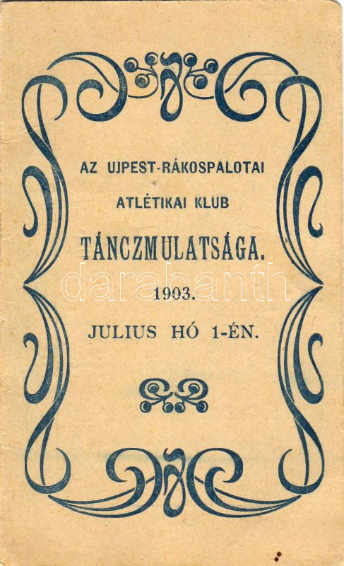 1903 Újpesti-Rákospalotai Atl. Klub Táncmulatság táncrendje https://www.darabanth.com/de/28-Fernauktion/28.0/Andere-Sammelgebiete/~87/1903-Ujpesti-Rakospalotai-Atl-Klub-Tancmulatsag-tancrendje~II51297
