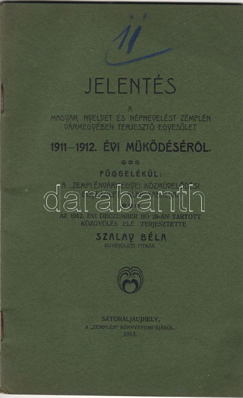 1913 Jelentés a magyar nyelvet és népnevelést zemplén vármegyében terj... https://www.darabanth.com/de/28-Fernauktion/28.0/Andere-Sammelgebiete/~87/1913-Jelentes-a-magyar-nyelvet-es-nepnevelest-zemplen-varmegyeben-terjeszto-egyesulet-mukC3~II43150