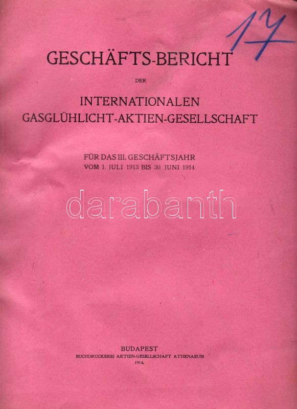1914 A nemzetközi világítógáz Rt. zárszámadása német nyelven https://www.darabanth.com/de/28-Fernauktion/28.0/Andere-Sammelgebiete/~87/1914-A-nemzetkozi-vilagitogaz-Rt-zarszamadasa-nemet-nyelven~II51140