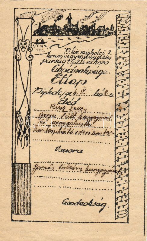 Beschreibung: 1924 Miskolci tiszti étkező étlapja