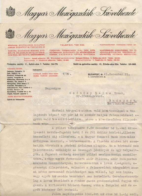 1945-46 Magyar Mezőgazdák Szövetkezetének 2 db levele https://www.darabanth.com/de/28-Fernauktion/28.0/Andere-Sammelgebiete/~87/1945-46-Magyar-Mezogazdak-Szovetkezetenek-2-db-levele~II51151