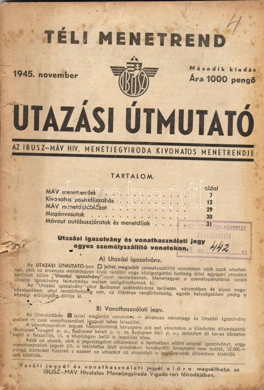1945 utazási útmutató Ibusz-MÁV menetrend https://www.darabanth.com/de/28-Fernauktion/28.0/Andere-Sammelgebiete/~87/1945-utazasi-utmutato-Ibusz-MAV-menetrend~II51264