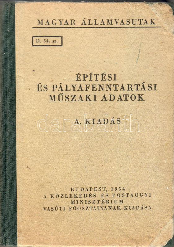 1954 Magyar Államvasútak: Építési és pályafenntartási Műszaki adatok https://www.darabanth.com/de/28-Fernauktion/28.0/Andere-Sammelgebiete/~87/1954-Magyar-Allamvasutak-Epitesi-es-palyafenntartasi-Muszaki-adatok~II51122