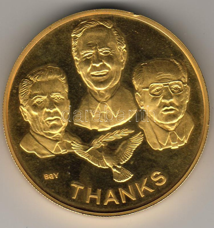 Beschreibung: NSZK 1989. "Berlin Wall" exrém nagyméretű piefort emlékérem "Kösöznet Magyarországnak - berlini fal ledöntése" rajta Reagen, Gorbacsov, Carter T:PP pici ph.