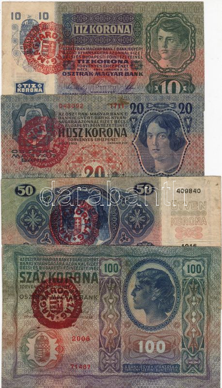 1912-15. 10K,20K,50K,100K piros "Magyarország" fny-tal, benne látványo... https://www.darabanth.com/de/28-Fernauktion/28.0/Numismatik/~89/1912-15-10K-20K-50K-100K-piros-Magyarorszag-fny-tal-benne-latvanyos-festekelfolyasok-TII-I~II51559