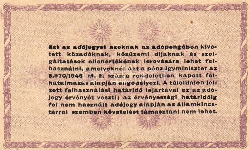 Beschreibung: 1946. 100.000Adóp. számozás nélkül, több szövegrész vastagon nyomva T:I