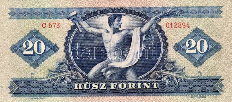 Beschreibung: 1949. 20Ft előlapon átlós képeltolódás!!! T:I