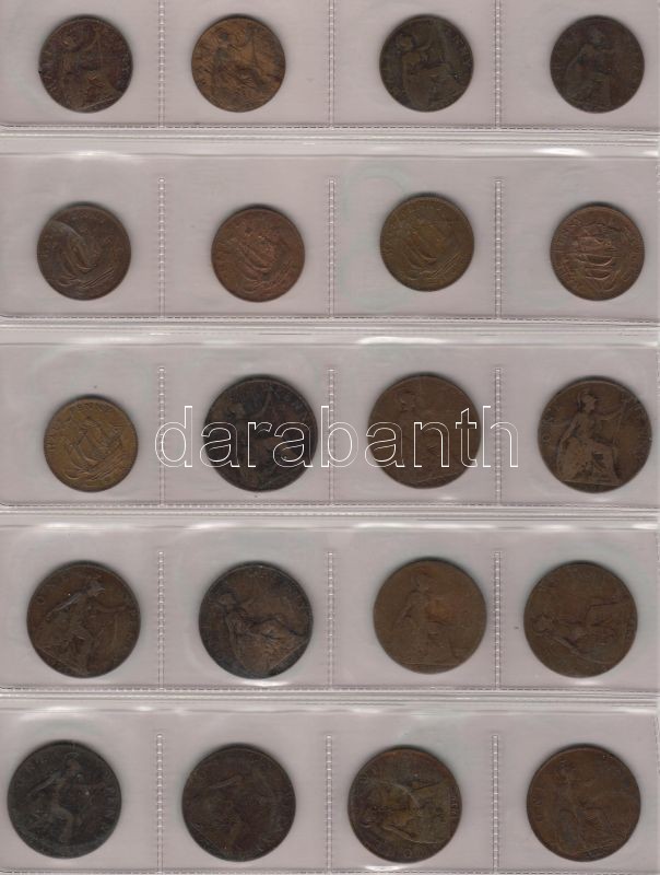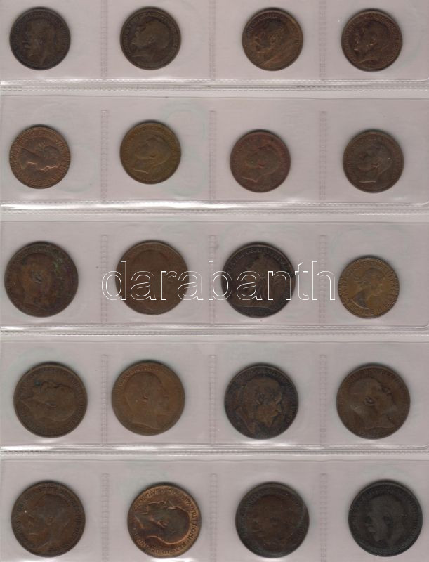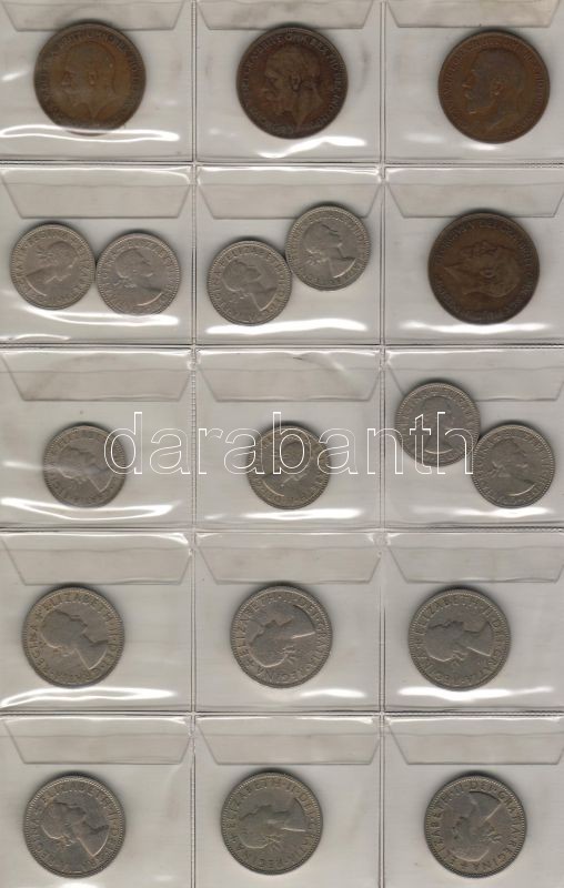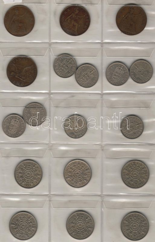 Nagy-Britannia 1898-1966. 38db klf évszámú fémpénz 1/2p (9x), 1p (15x)... https://www.darabanth.com/de/28-Fernauktion/28.0/Numismatik/~92/Nagy-Britannia-1898-1966-38db-klf-evszamu-fempenz-12p-9x-1p-15x-1Sh-8x-2Sh-6x-TII~II51650