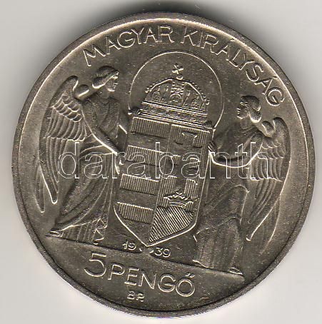 1939. "Horthy" 5P ezüst T:2+ https://www.darabanth.com/de/28-Fernauktion/28.0/Numismatik/~94/1939-Horthy-5P-ezust-T2plus~II51503