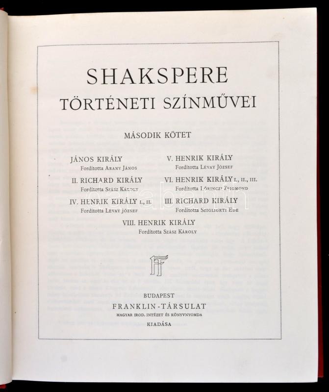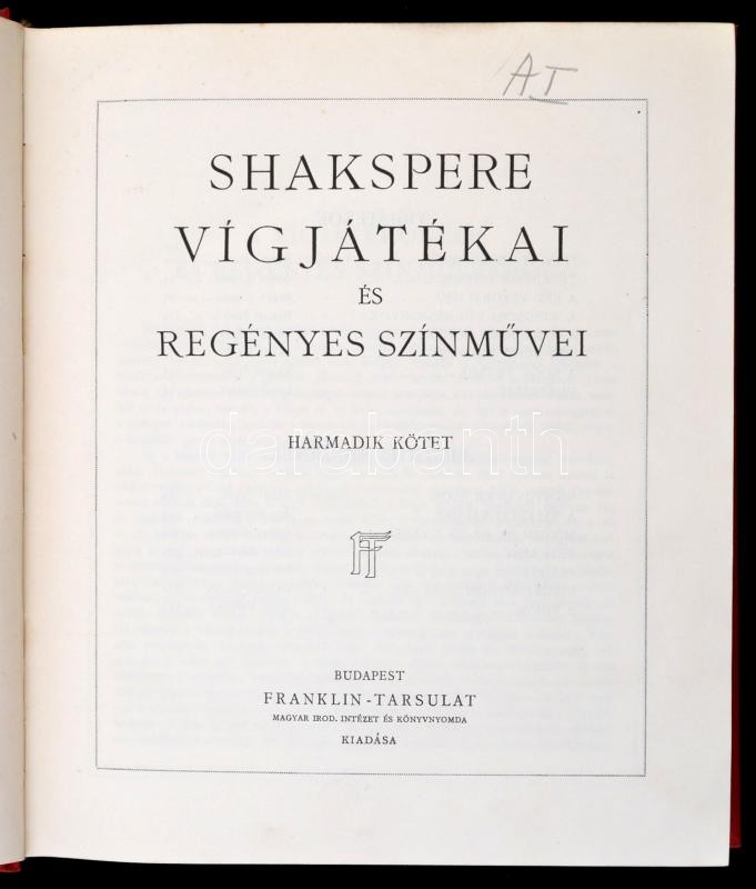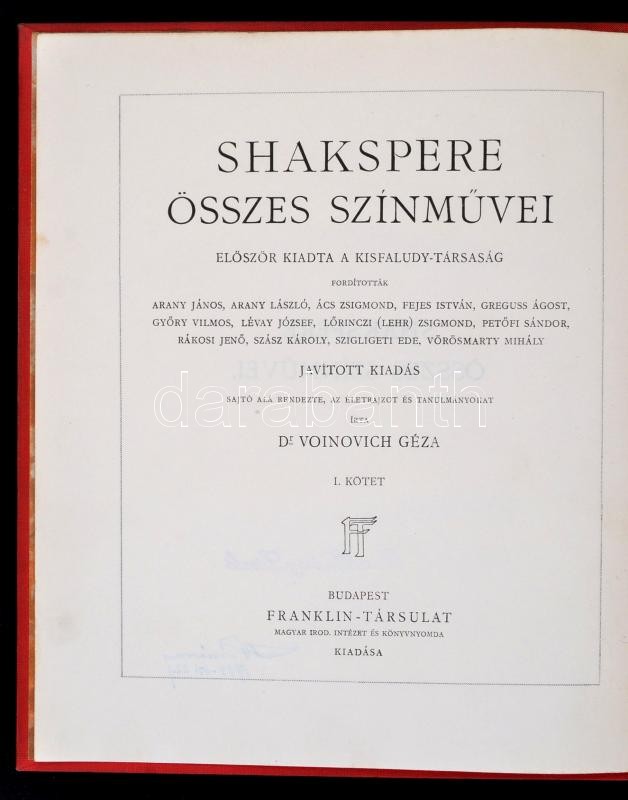 Shakespeare (Shakspere, (William): -- összes színművei. Sajtó alá rendezte, az életrajzot és tanulmányokat írta Voinovich Géza. Javított kiadás. 1-3. kötet.