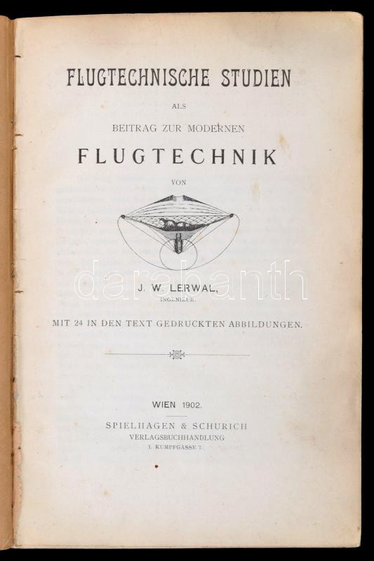 Lerwal, J. W.: Flugtechnische Studien als Beitrag zur modernen Flugtechnik. Bécs, 1902, Spielhagen & Schurich. Német nyelven. Kissé kopott félvászon kötésben, jó állapotban. / In German, slightly worn half-linen binding