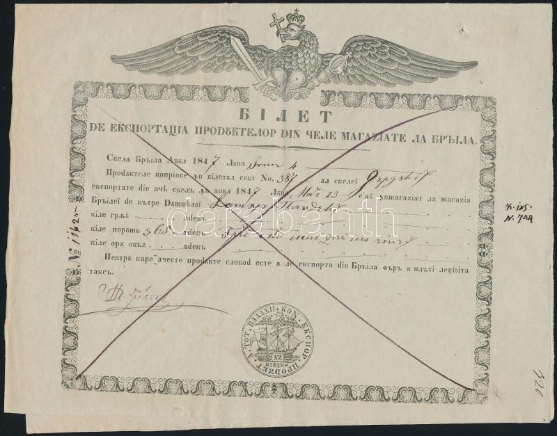 1847 Export szállítólevél Havasalföldről pecsételt szignettával / Expo... https://www.darabanth.com/de/28-Gross-Auktion/28.1/Andere-Sammelgebiete/Dokument~11180/1847-Export-szallitolevel-Havasalfoldrol-pecsetelt-szignettaval-Export-licence-Bilet-fro~II1680612