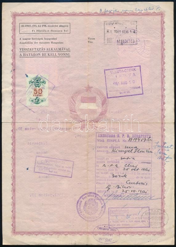 1961 A Magyar Népköztársaság fényképes útlevele magyar állampolgárságú... https://www.darabanth.com/de/28-Gross-Auktion/28.1/Andere-Sammelgebiete/Dokument~11180/1961-A-Magyar-Nepkoztarsasag-fenykepes-utlevele-magyar-allampolgarsagu-allando-romania~II1679723