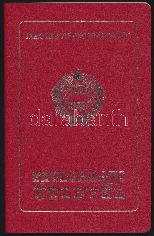 1985 Szolgálati útlevél / Service passport https://www.darabanth.com/de/28-Gross-Auktion/28.1/Andere-Sammelgebiete/Dokument~11180/1985-Szolgalati-utlevel-Service-passport~II1680700