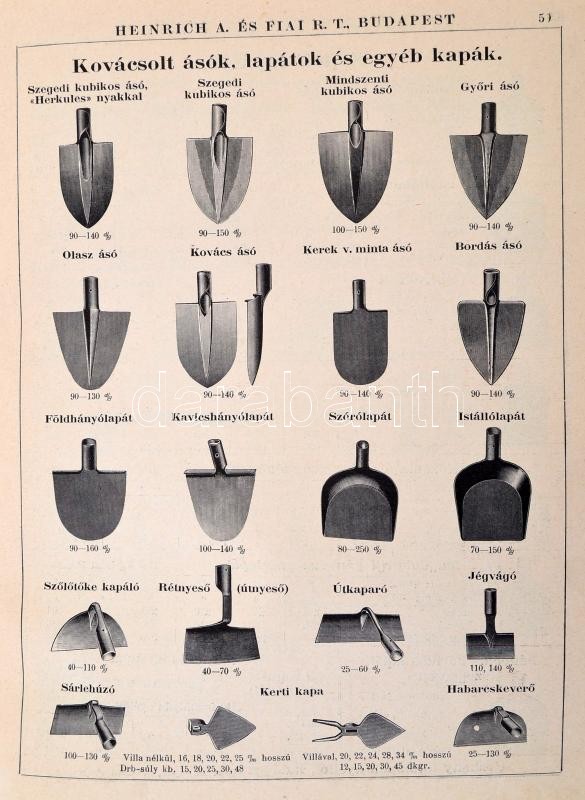 1935 Heinrich A. és Fiai vasnagykereskedés árjegyzéke.+Engedmény és félárjegyzék prospektussal. 1935. július. Bp., Franklin-ny., 373 p. Papírkötésben, kissé szakadt gerinccel, kissé foltos címoldallal, de egyébként jó állapotban.