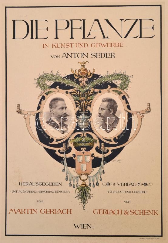 Gerlach, Martin: Die Pflanze in Kunst und Gewerbe. Wien, 1886. Gerlach & Schenk, 90 db nagyméretű, nagyrészt litografált és részben heliogravűr táblákkal. Kiadói, kissé sérült félvászon kötésben, tartalommal, cÃmlappal, képjegyzékkel. Összességében jó állapotban, / With 90 large lithographic tables. Mostly lithographies, some heliogravures plus table of contents and inner cover. In slightly damaged half linen binding. 40x56 cm