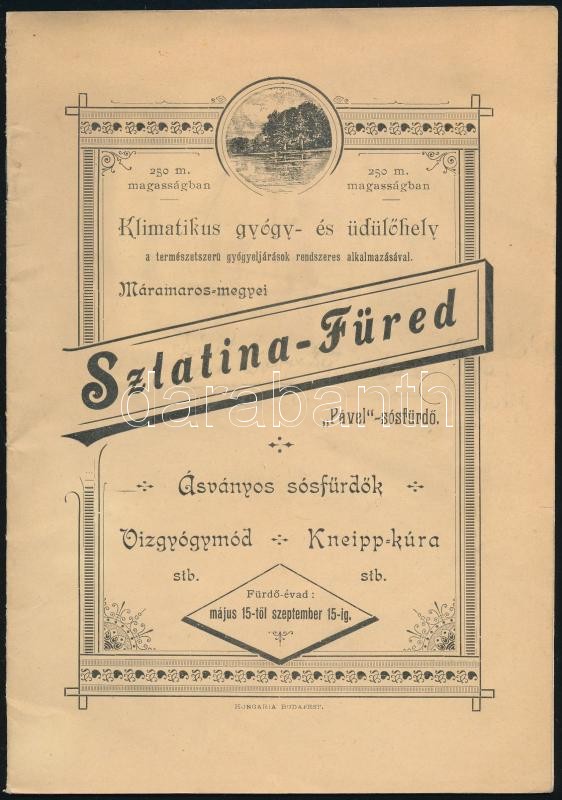 cca 1890 Máramaros-megyei Szlatina-Füred "Pável"-sósfürdő. i... https://www.darabanth.com/de/28-Gross-Auktion/28.1/Andere-Sammelgebiete/Drucksachen~11191/cca-1890-Maramaros-megyei-Szlatina-Fured-Pavel-sosfurdo-ismerteto-fuzet-szamos-erdekess~II1680979