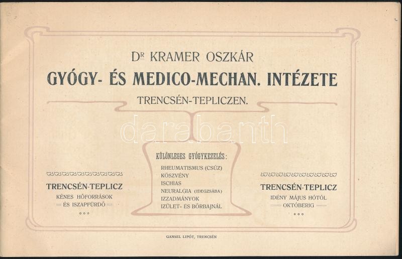 cca 1910 Trencsén-Teplicz, Dr. Kramer Oszkár gyógy- és medico-mechanik... https://www.darabanth.com/de/28-Gross-Auktion/28.1/Andere-Sammelgebiete/Drucksachen~11191/cca-1910-Trencsen-Teplicz-Dr-Kramer-Oszkar-gyogy-es-medico-mechanikai-intezete-kepes-ismer~II1679547