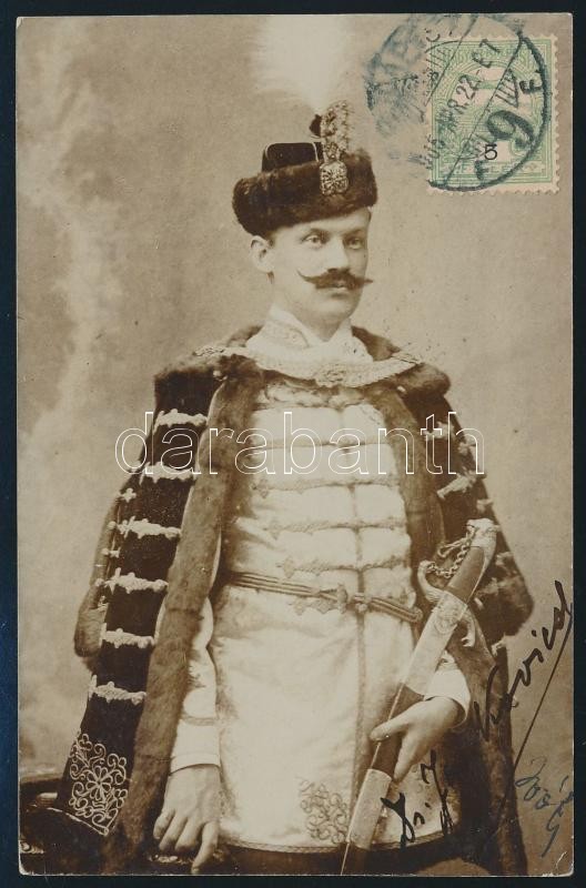 1905 dr. Jankovich László (1860-1921) jogász, főispán, országgyűlési képviselő fényképe díszmagyarban aláírásának képével. Fotólap postán elküldve 9x15 cm