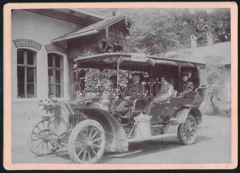 1907 A felvidéki Smerdzonkából (Vörös Kolostor-furdő) a lengyelországi Scawnicára tartó üdülővendégeket szállító autó fotója. Feliratozott keményhátú fotó / Auto(bus) from Smerdzonka to Scawnica 18x13 cm