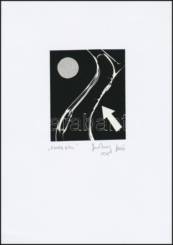 1975 Jankovszky György(1946-): Fehér nyíl, feliratozva, aláírt, pecsét... https://www.darabanth.com/de/28-Gross-Auktion/28.1/Andere-Sammelgebiete/Foto~11241/1975-Jankovszky-Gyorgy1946-Feher-nyil-feliratozva-alairt-pecsettel-jelzett-kartonra-ka~II1679853