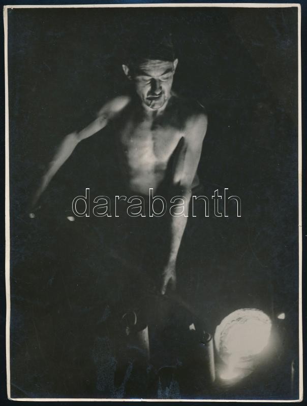 Beschreibung: Korschelt Miklós (1900-1982): A tégelyöntő, fotó, hátulján feliratozva, pecséttel jelzett, 23×17 cm