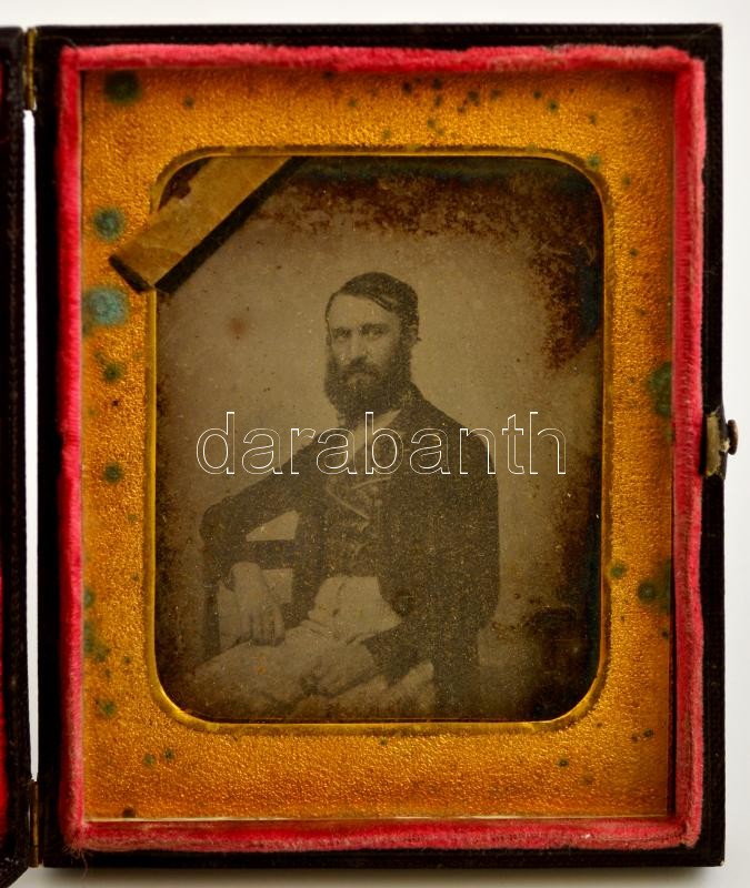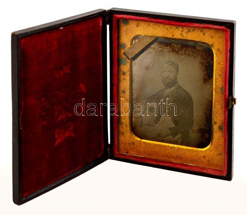 cca 1840 A Procopius család egyik tagját, feltehetően Procopius György (1788-1865) budai helytartótanácsi hivatalnokot ábroló dagerrotípia. Bársony tokban / Daguerreotype depicting an ancestor of Bela Procopius. 10x12 cm